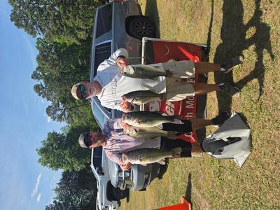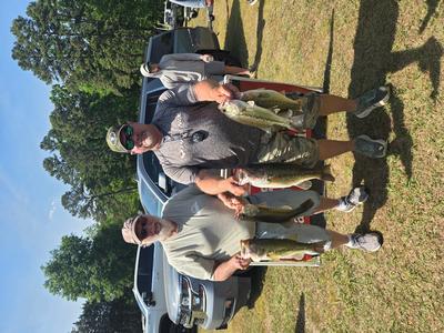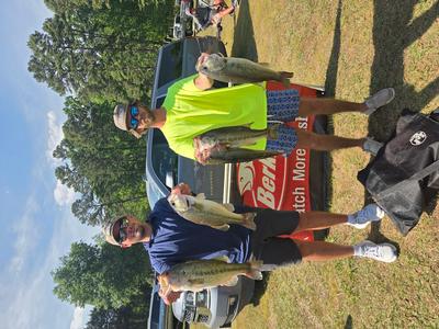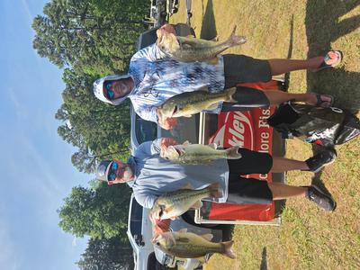 The top teams reported catching their fish on pop-r, jigs, and wacky worms in 5 to 10 feet. Robert Mixon & Robert Lambert took 1st place with 20.46 pounds and winnings of $4750. 2nd place went to Bart & Wyatt Hill with a weight of 19.47 pounds and total winnings of $2,450. Steve Summer & Jason Thomas weighed 19.24 pounds and earned them $1500 and 3rd place. 4th place went to the team of Roy Barrow & Vince Nettles with 19.21 pounds and winnings of $1,000. The team of Bud Ratliff & Corey Ricketts took 5th place with 18.69 pounds and winnings of $700. Rounding out the teams in the money was 6th place Matt & Jeremy Talbert. 7th Robbie Moffitt & Mike Kiser. 8th Maurice Parent & Michael Harrah. 9th Colby Russell & Pierson Page. 10th Jason & Mike Riggs. 11th Allen & Brian Robbins. 12th CJ Johnston & Matt Stanley. 13th Mitch Drew & Rodney Cozart. 14th Robert Branson & Braden Scherer. 15th Michael Kinard & Aaron Harwood. 16th Steve Sink & Don Sprinkle. 17th Chris & Vincent Murphy. 18th Ethan Fesperman & Bryon Perry.