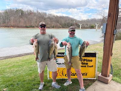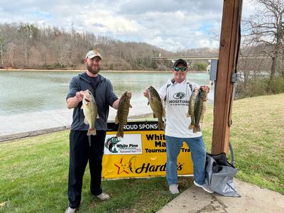 Second place was Ryan Crouse and Jonathan Russell who came to the scales with 5 fish for 19.70pounds. This team reported catching over 20 bass a rattle trap fishing shallow water from the main lake points all the way back to the back of the pockets.