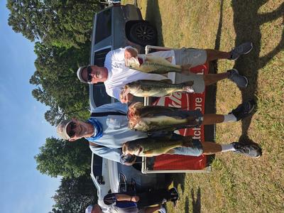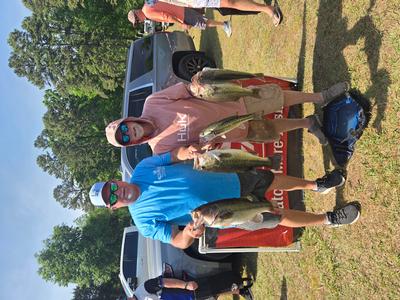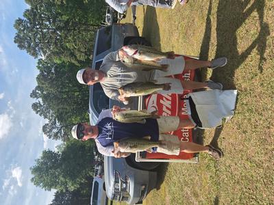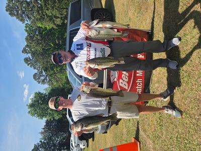 The top teams reported catching their fish on pop-r, jigs, and wacky worms in 5 to 10 feet. Robert Mixon & Robert Lambert took 1st place with 20.46 pounds and winnings of $4750. 2nd place went to Bart & Wyatt Hill with a weight of 19.47 pounds and total winnings of $2,450. Steve Summer & Jason Thomas weighed 19.24 pounds and earned them $1500 and 3rd place. 4th place went to the team of Roy Barrow & Vince Nettles with 19.21 pounds and winnings of $1,000. The team of Bud Ratliff & Corey Ricketts took 5th place with 18.69 pounds and winnings of $700. Rounding out the teams in the money was 6th place Matt & Jeremy Talbert. 7th Robbie Moffitt & Mike Kiser. 8th Maurice Parent & Michael Harrah. 9th Colby Russell & Pierson Page. 10th Jason & Mike Riggs. 11th Allen & Brian Robbins. 12th CJ Johnston & Matt Stanley. 13th Mitch Drew & Rodney Cozart. 14th Robert Branson & Braden Scherer. 15th Michael Kinard & Aaron Harwood. 16th Steve Sink & Don Sprinkle. 17th Chris & Vincent Murphy. 18th Ethan Fesperman & Bryon Perry.