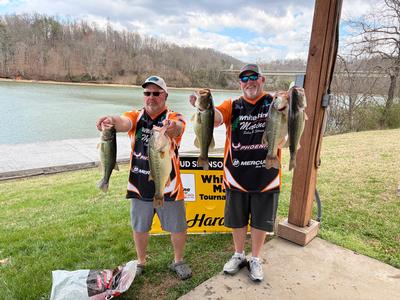 Second place was Ryan Crouse and Jonathan Russell who came to the scales with 5 fish for 19.70pounds. This team reported catching over 20 bass a rattle trap fishing shallow water from the main lake points all the way back to the back of the pockets.